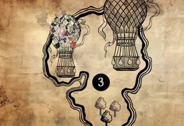 Navigue vers ces îlots flottants où des montgolfières illuminées dansent dans le ciel nocturne. Ces merveilles suspendues, entièrement créées à la main par Joy et l'elfe Stéphane le Vannier, transforment chaque espace en une aventure céleste et lumineuse.