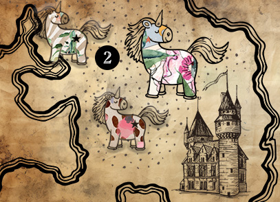 Ici, ses licornes géantes, naissent au gré de ces collages, mêlant textures et couleurs dans une symphonie artistique empreinte d’enfance et de fantaisie. Leur magie inonde le royaume de joie.