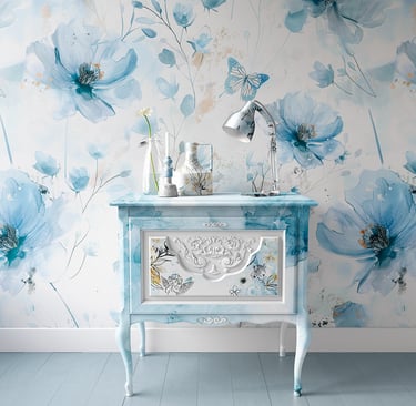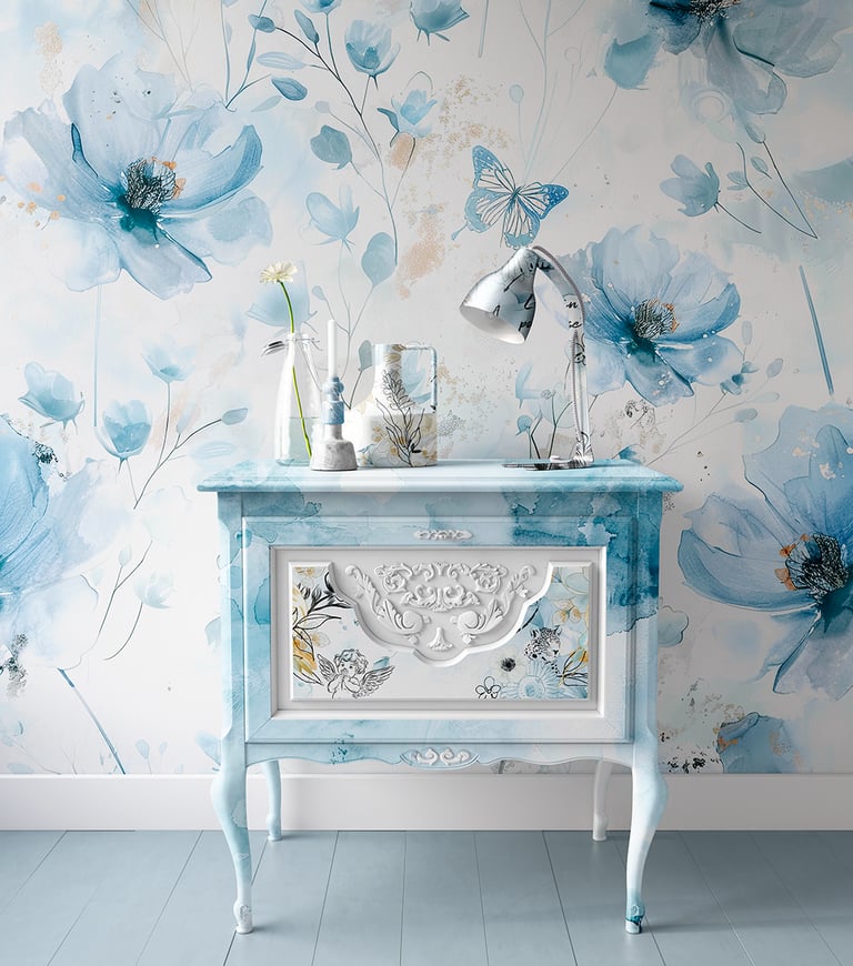 "Fleurs Bleues d’Aquarelle" : Une Brise Peinte à la Main