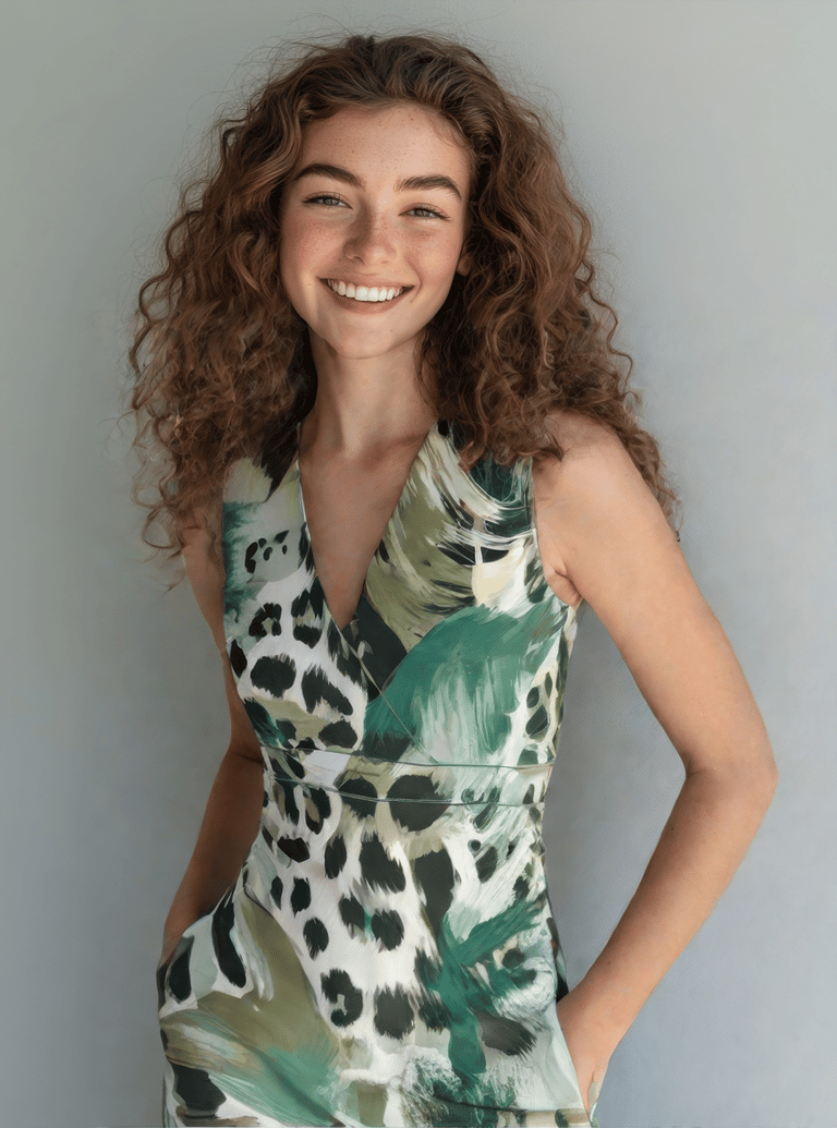 "Vertigo" est bien plus qu’un imprimé, c’est une énergie, un mouvement, un souffle de nature libre qui accompagne ta silhouette avec élégance.